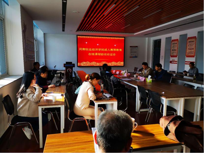10月23日下午,pg游戏成人高等教育在线课程验收论证会在龙子湖校区动物科技学院会议室举行。学校学位委员会委员黄炎坤教授、pg游戏电子模拟器院长宋平教授、动物医学学院院长宋予震副教授、pg游戏电子模拟器副院长王云善、动物科学学院教研室主任韩占兵教授、在线学习平台青书学堂河南区总经理曹智祥等作为评审组专家,与申请验收课程负责人共20多人参加了会议。