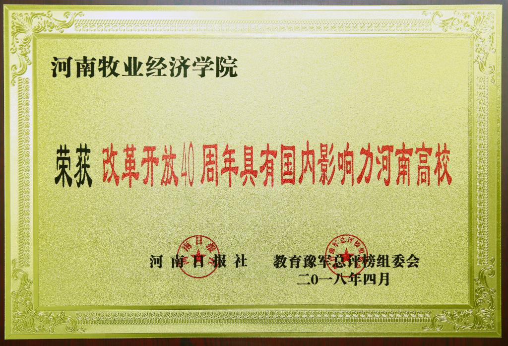 4月26日上午,由河南日报社主办的“第九届河南高等教育领军高校高峰论坛暨2018年度河南教育豫军总评榜”颁奖典礼在河南日报报业大厦举办,论坛发布了“改革开放40周年教育豫军总评榜”并进行了表彰,pg游戏荣获“改革开放40周年具有国内影响力河南高校”。