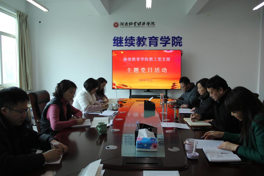 首先,吕琳领学了《求是》杂志发表的习近平总书记重要文章《在二十届中央政治局第一次集体学习时的讲话》。随后,全体党员集中观看了《河南省十四届人大一次会议隆重开幕》视频。党总支书记张君华分享了学习心得,她指出,习近平总书记的重要讲话,对学习宣传贯彻党的二十大精神作出全面部署、提出明确要求,告诉我们要“在全面学习上下功夫、在全面把握上下功夫、在全面落实上下功夫”,具有很强的政治性、思想性、指导性和现实针对性。河南省十四届人大一次会议为谱写新时代中原更加出彩绚丽篇章引领了方向。并要求大家要深刻学习领悟上述学习内容的精神实质,不折不扣地落实党中央、省委省政府的决策部署,把党的二十大精神转化为履职尽责的实际行动,落实到继续教育工作各方面。