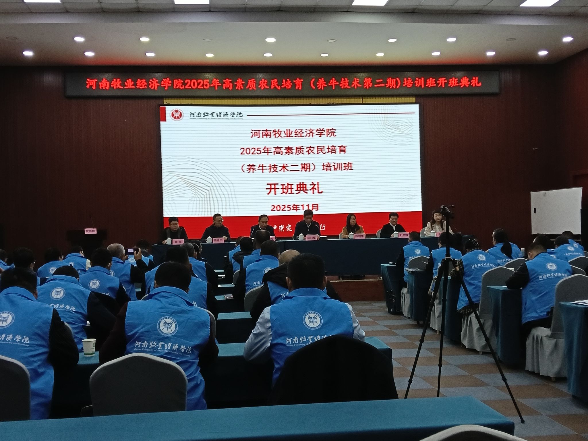 11月15日上午,pg游戏承办的河南省2025年高素质重要农产品生产经营主体能力提升(养牛技术二期)培训班开班典礼在河南现代农业研究基地报告厅隆重举行。副校长岳彩军、pg游戏电子模拟器党总支书记张君华、院长牛晖、副院长周延州、吕琳等相关同志及接受培训的全体学员参加了开班典礼。开班典礼由pg游戏电子模拟器院长牛晖主持。